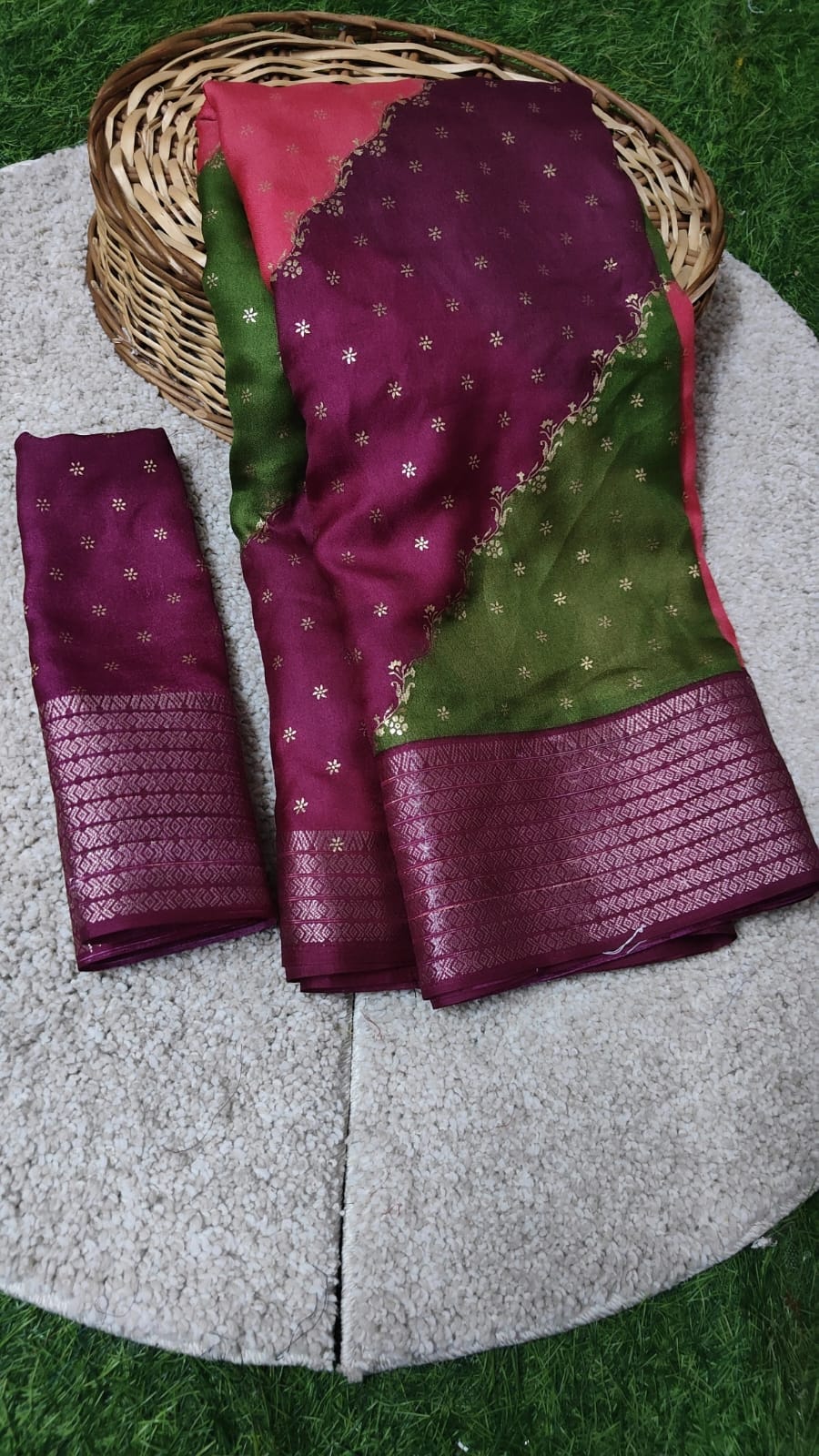 Border: It features a prominent, wide contrast borders with intricate gold zari weaving.