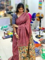 With Contrast kalamkari blouse