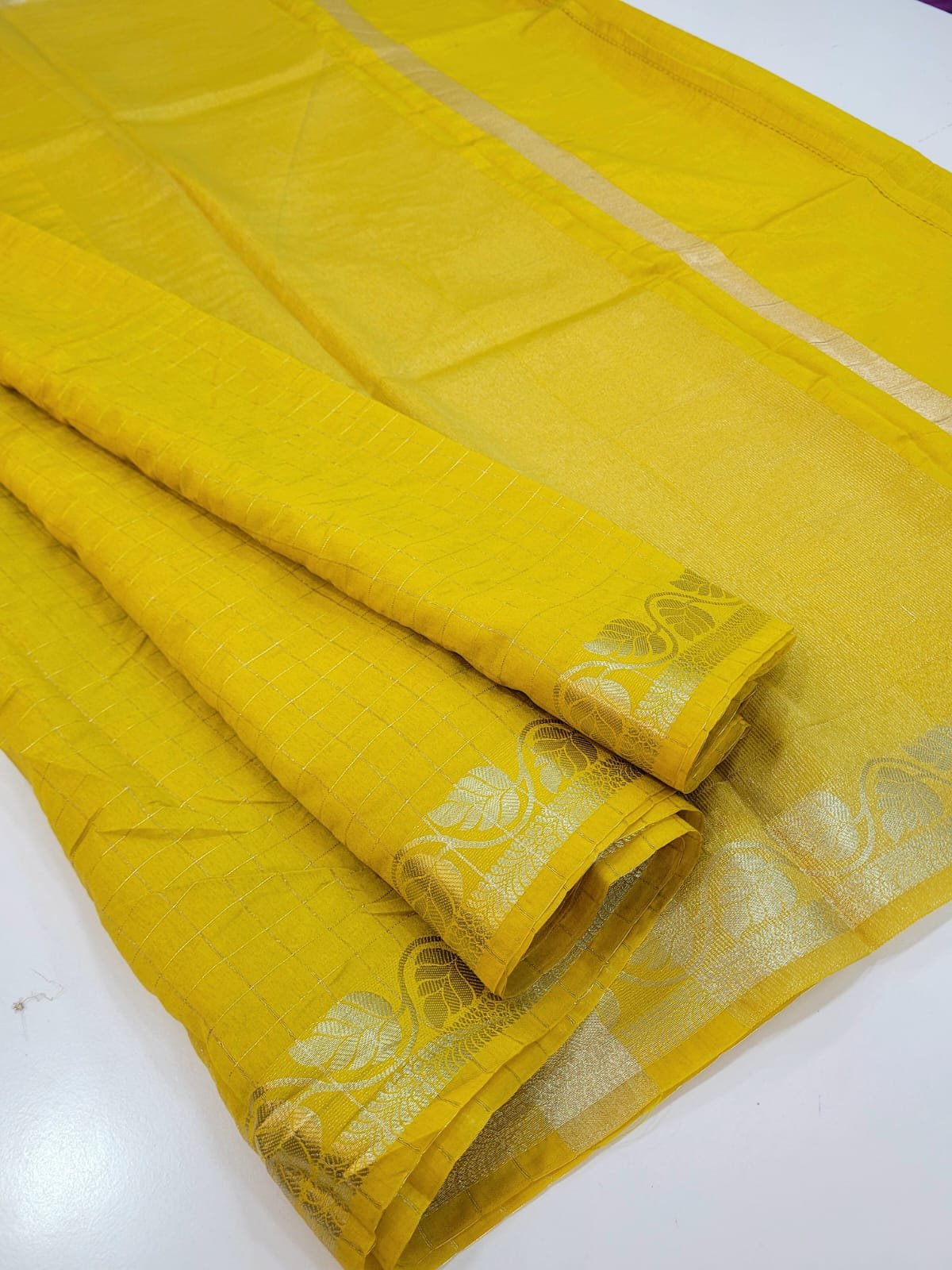 Premium Crushed silk Sarees with Zari checks