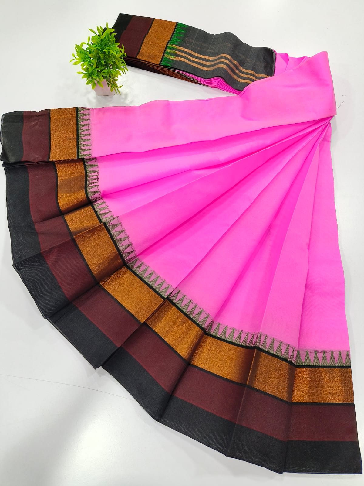 👉🏻 Contrast blouse and Grand Munthi With Border