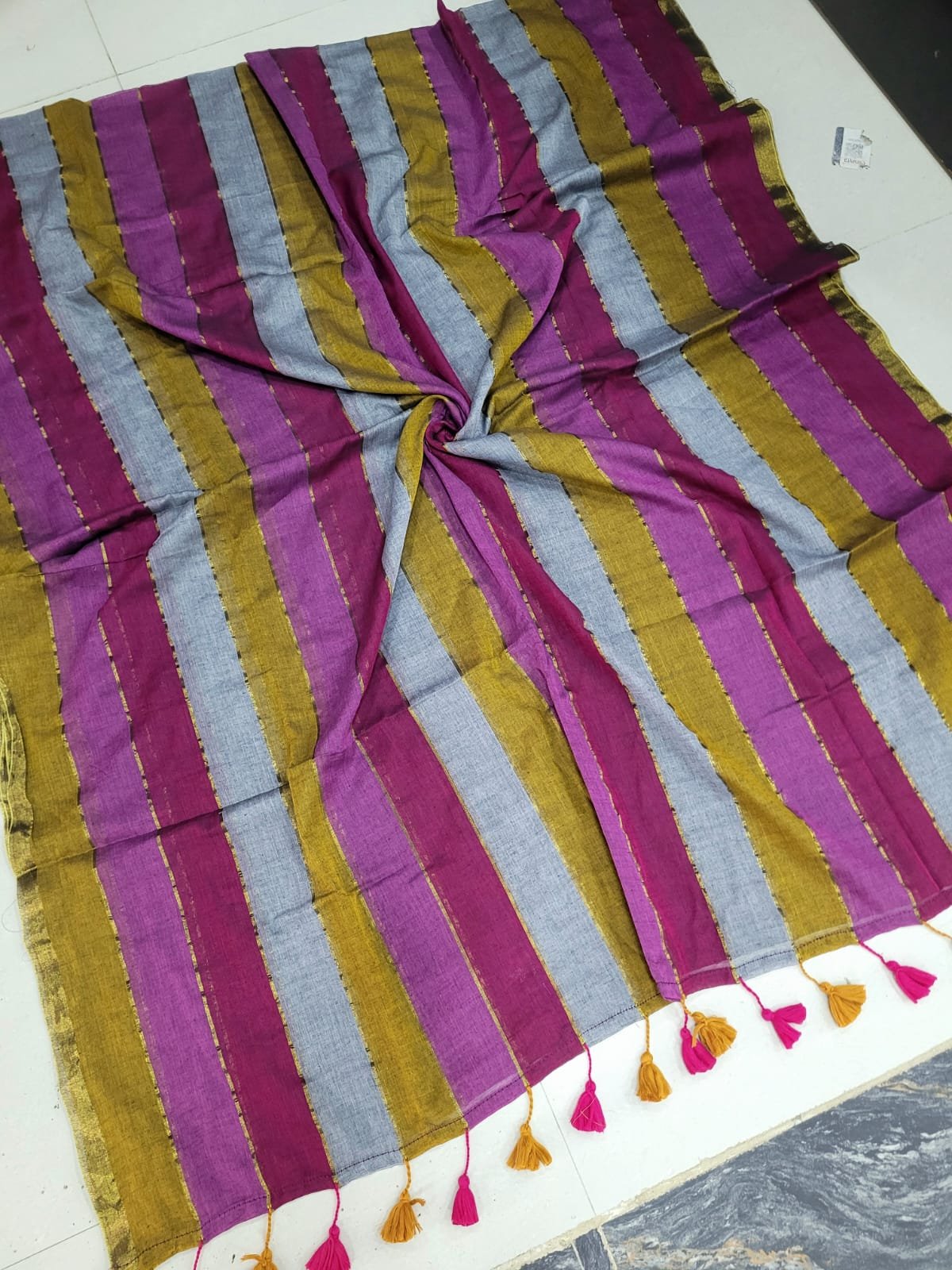 Handmade tassels on the pallu.