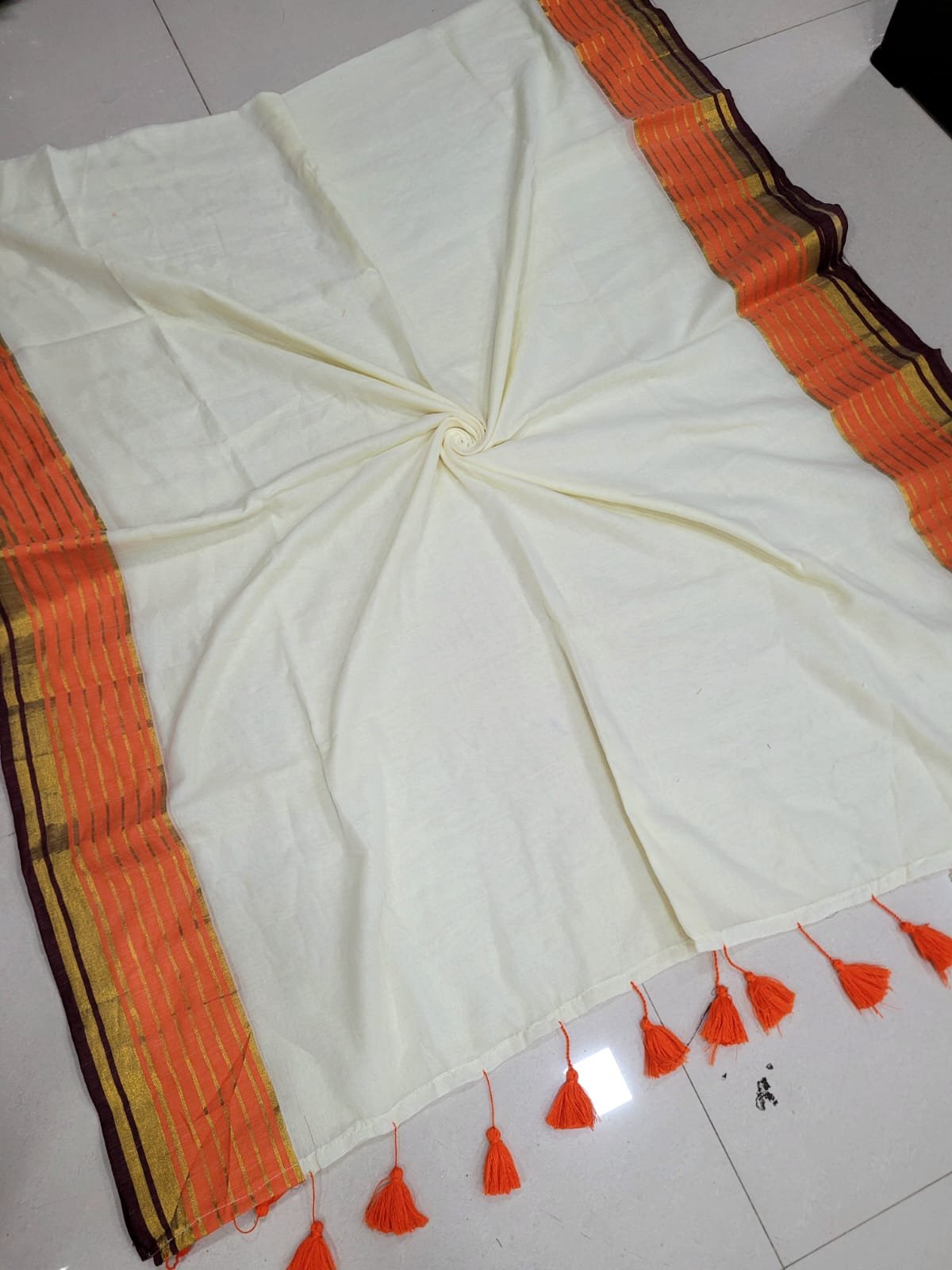 Handmade tassels on the pallu.