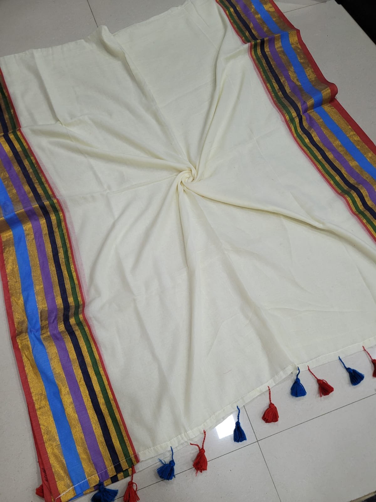 Handmade tassels on the pallu.