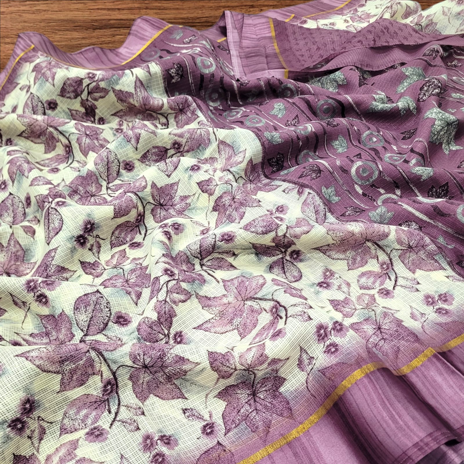 Fabric: Kota Silk, known for its lightweight, sheer texture, and square-check pattern with different prints