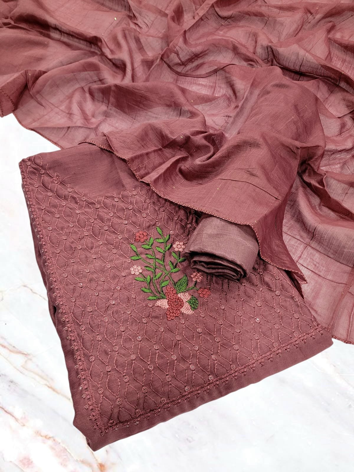 Type- Unstitched dress material fits up to XXXL.