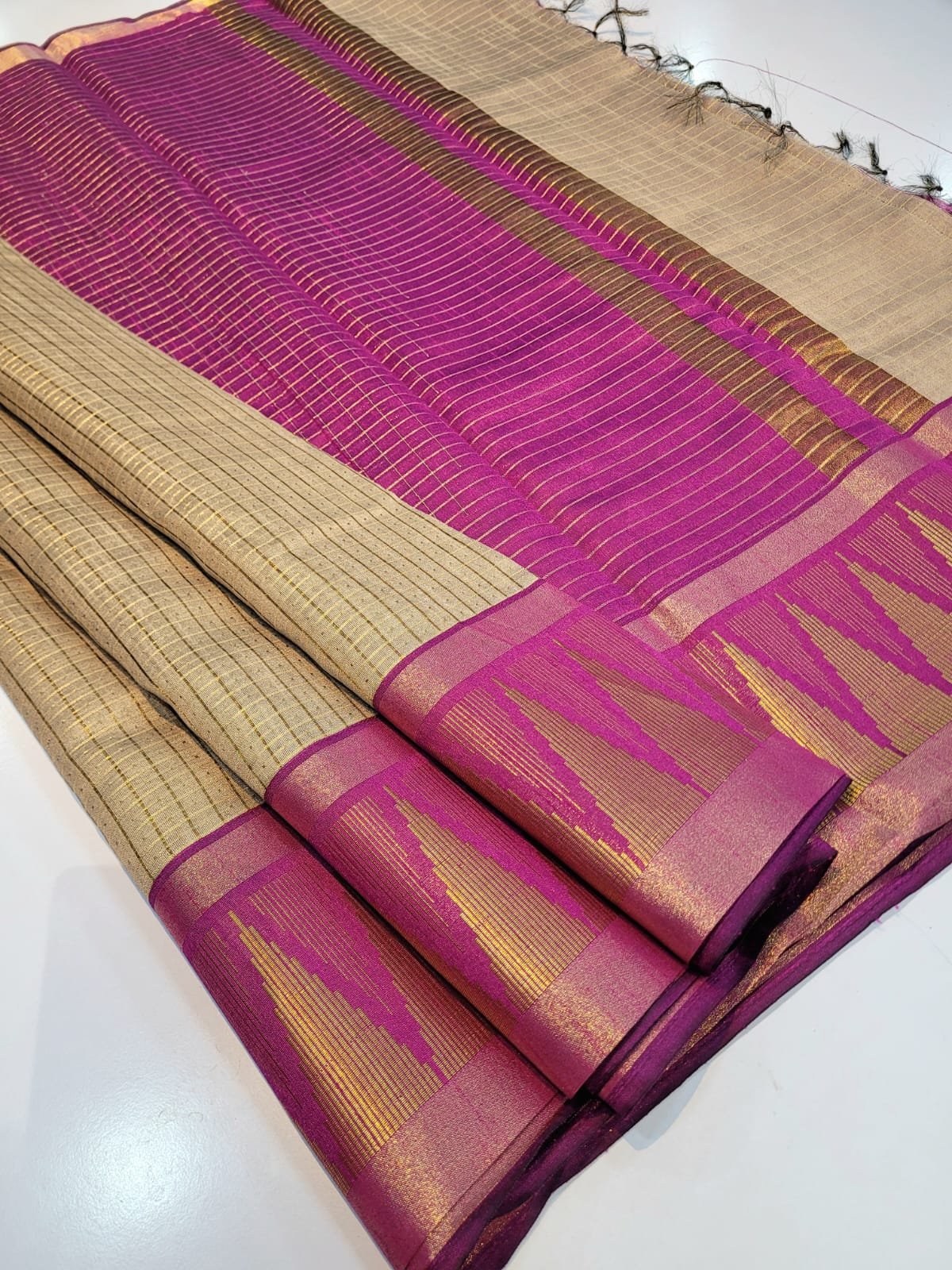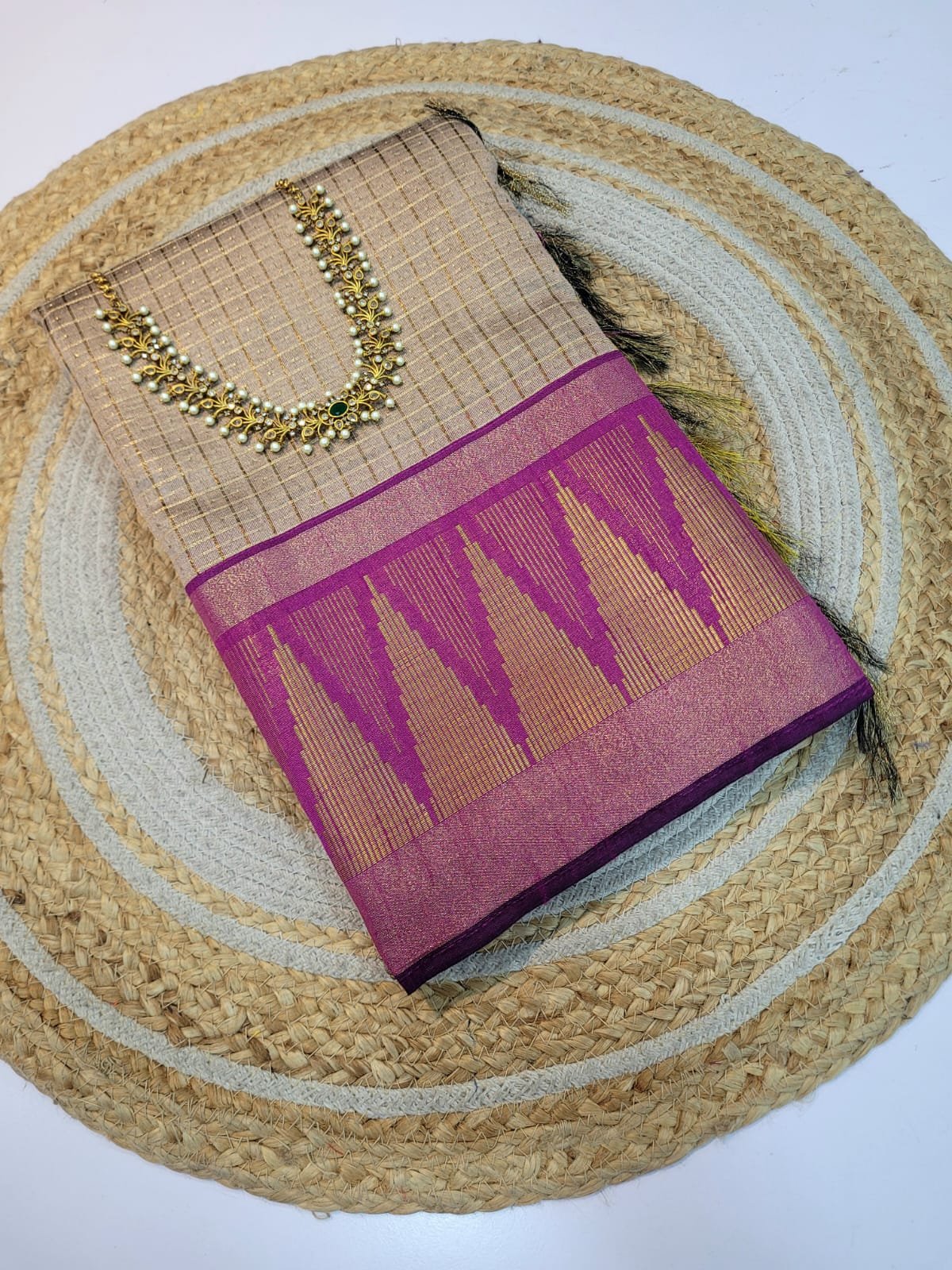 💐Small Checks Jari Weaving all over the Saree
