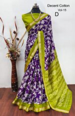 This beautiful cotton saree has an attractive kalamkari print pattern with traditional motifs in vibrant colours