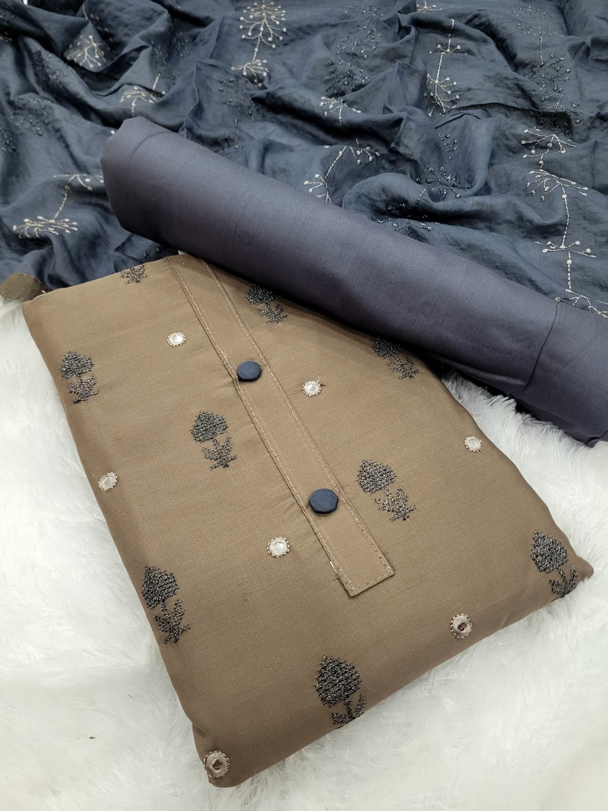 Trendy soft cotton silk unstitched salwar material, foil, embroidery & thread work on front portion adds extra essence to the Fabric
