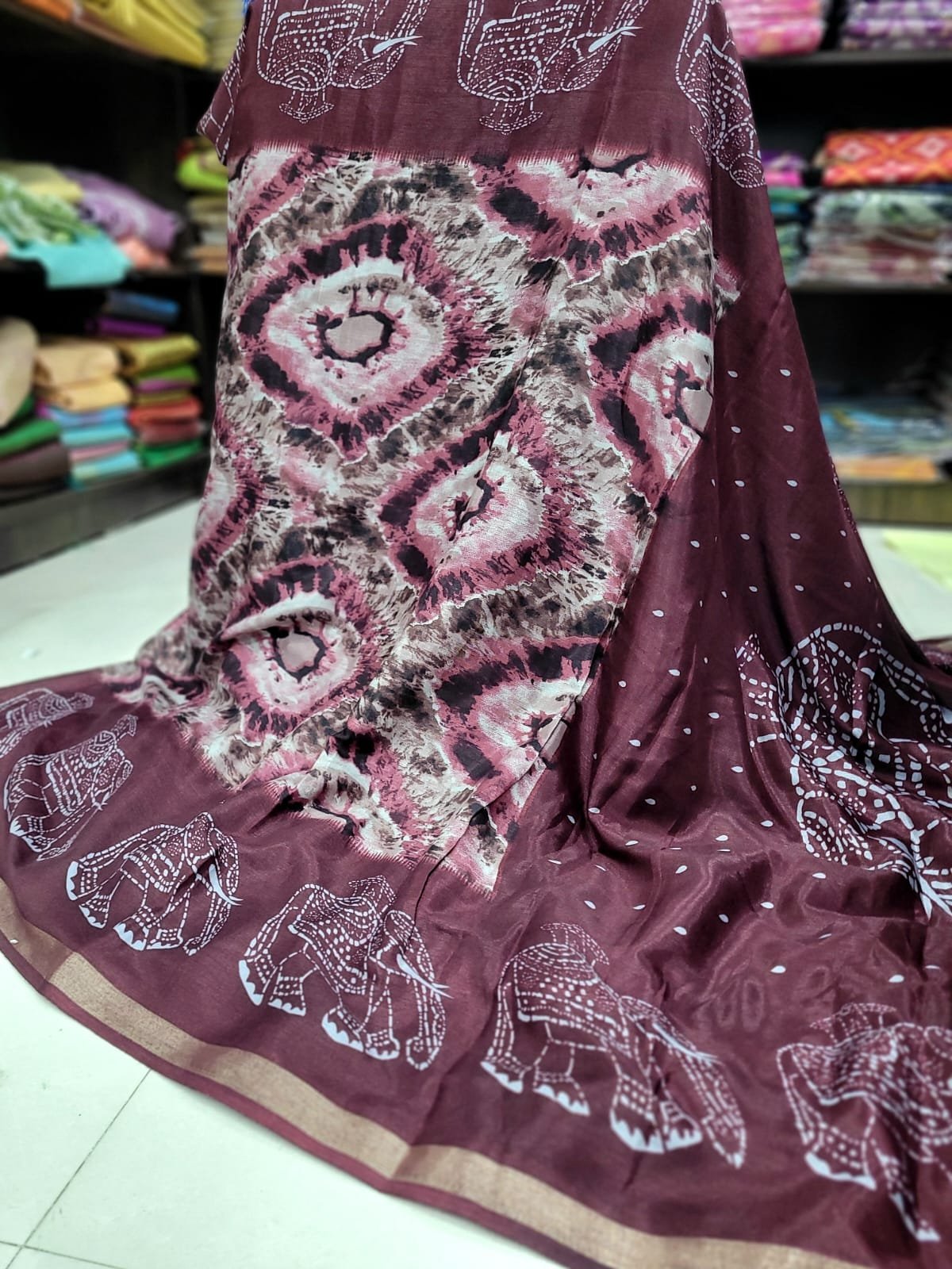 A striking pallu and contrasting blouse piece enhance the saree’s beauty and elegance