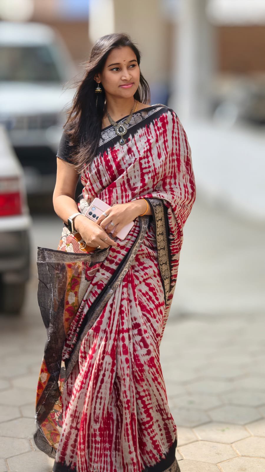 This beautiful cotton saree has an attractive kalamkari print pattern with traditional motifs in vibrant colours