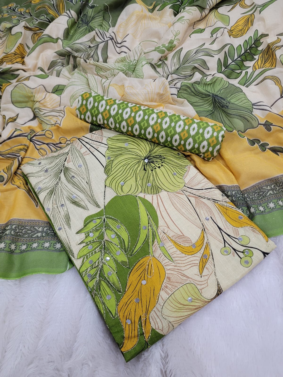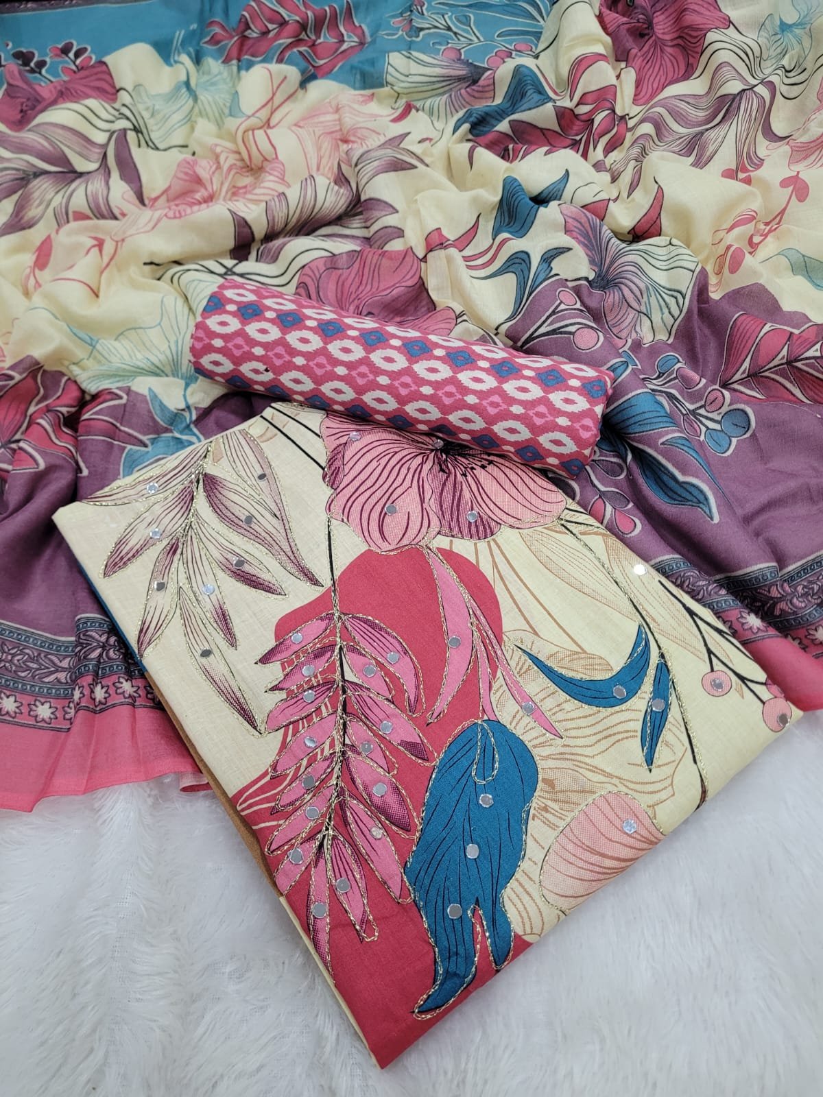 Branded Cotton Salwar Materials (Unstitched 3pcs)