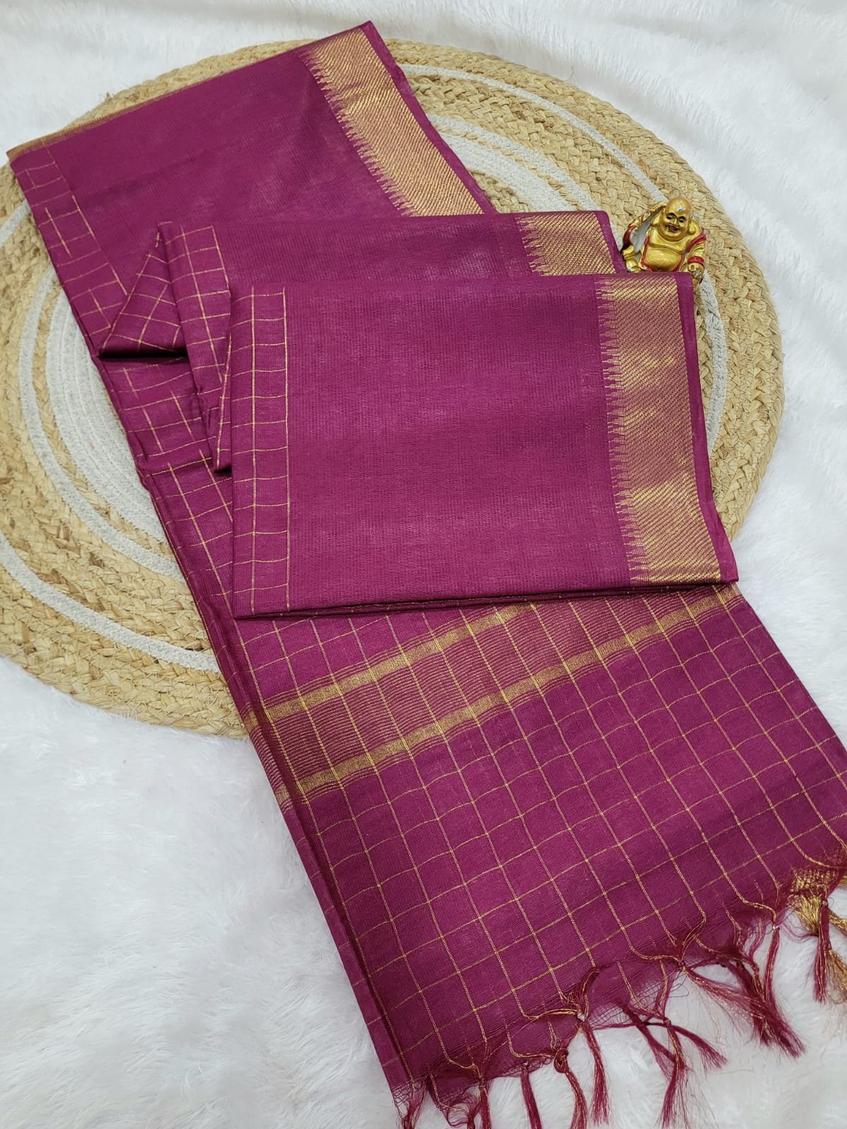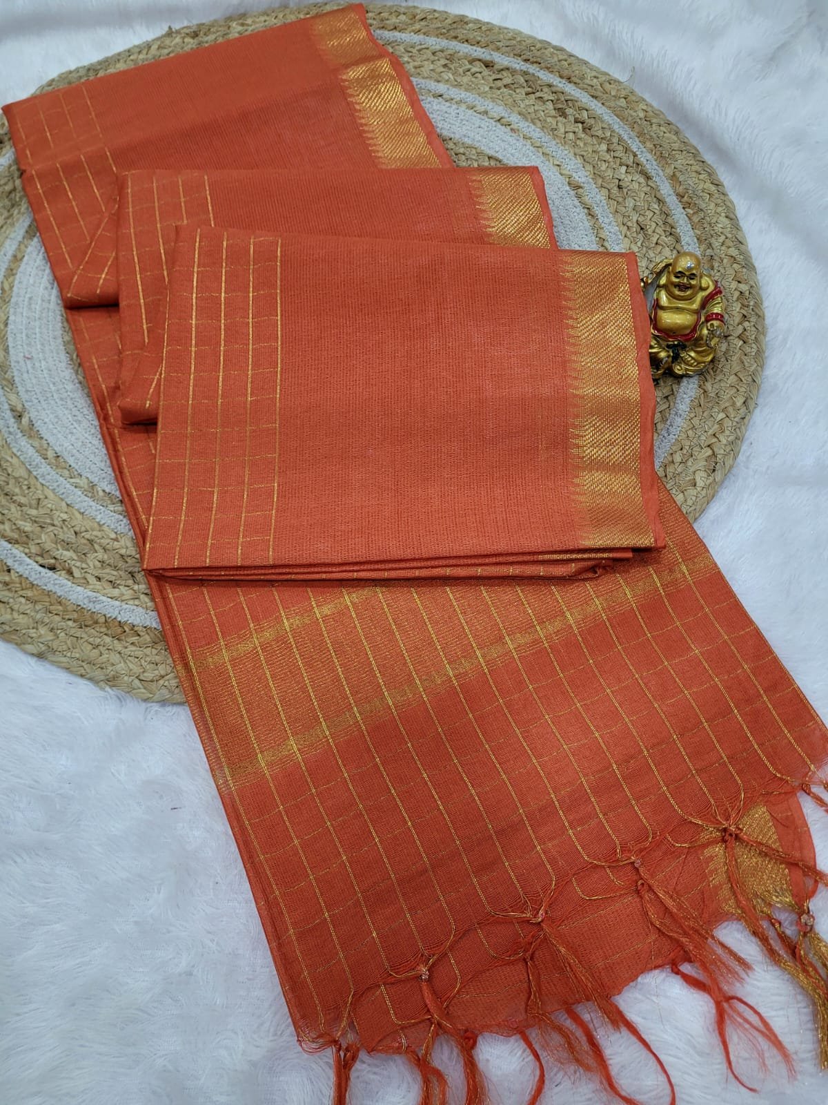 Premium Crushed silk Sarees with Zari checks